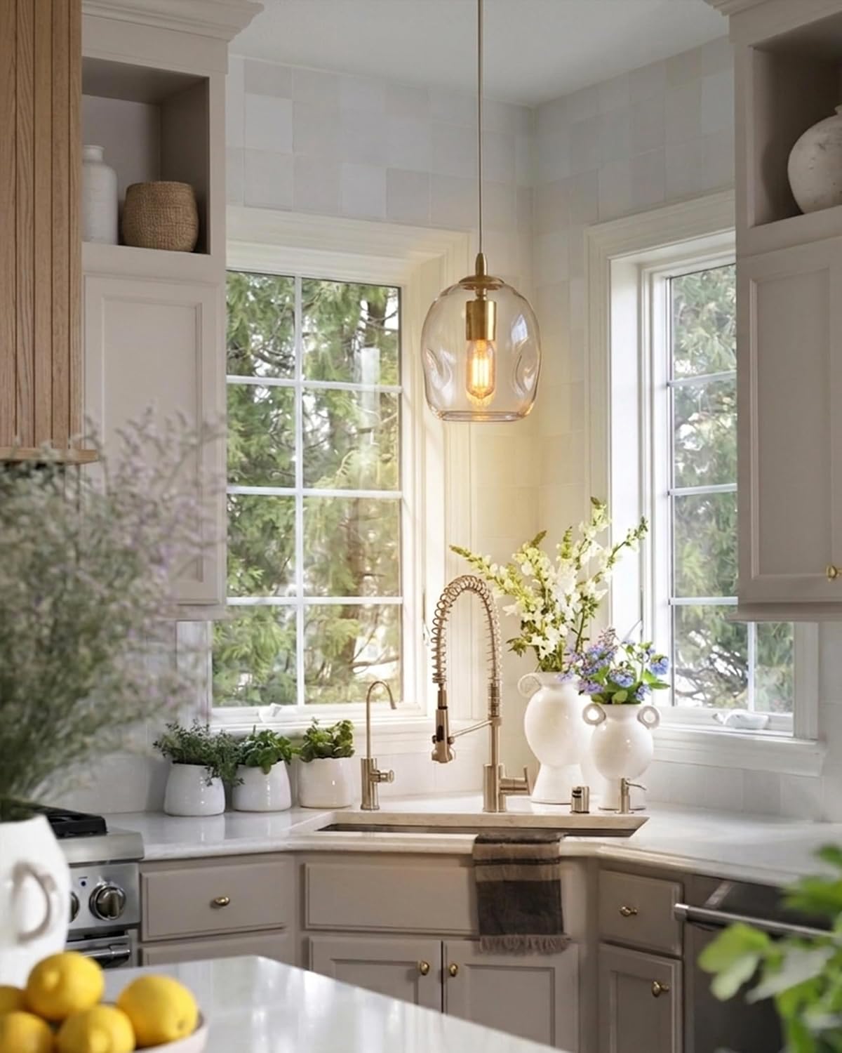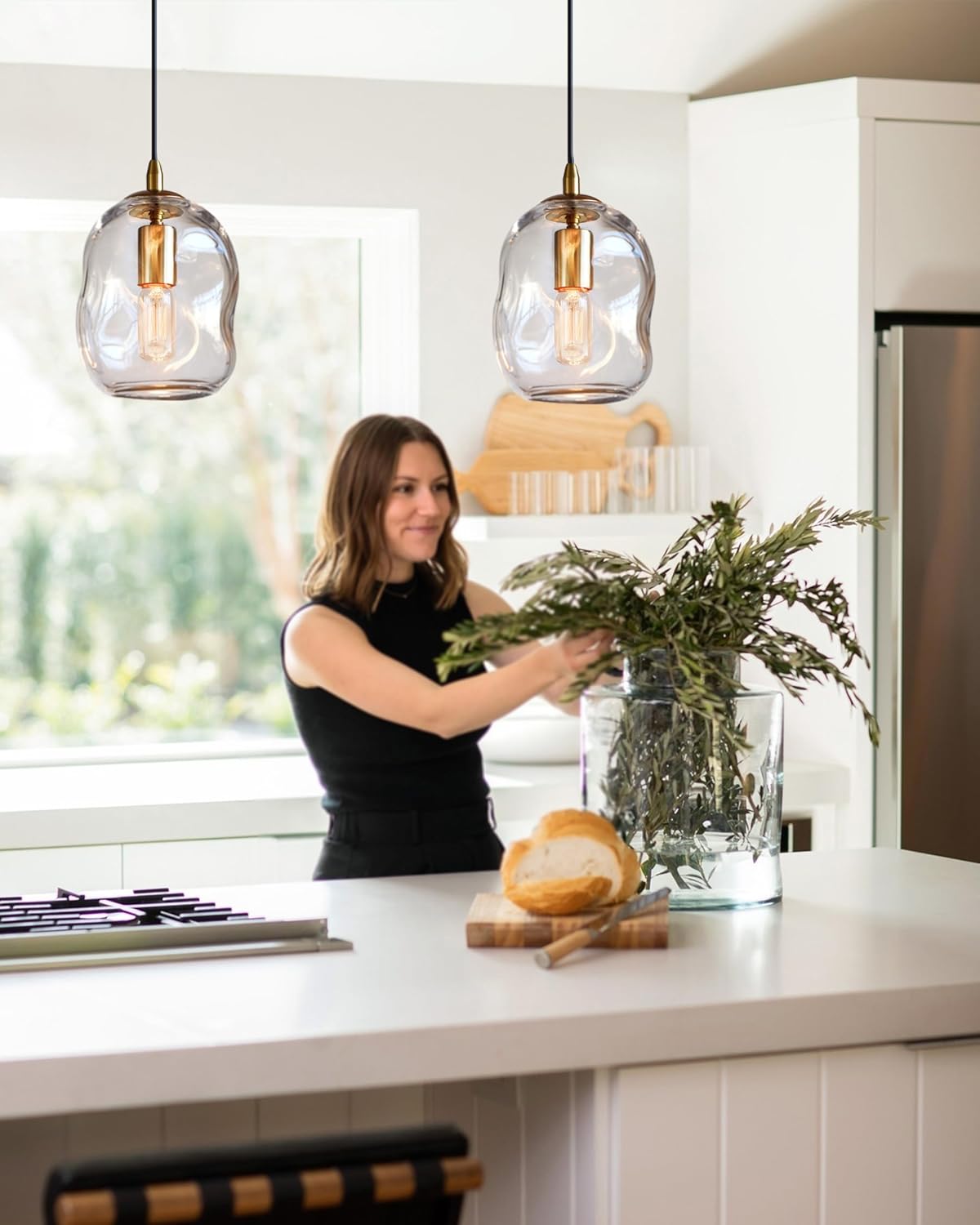 Illuminate your space with the CASAMOTION Glass Pendant Light, a stunning blend of modern design and industrial charm. This exquisite fixture features a gold and clear organic globe shape that adds a touch of elegance to any room. Perfect for hanging over kitchen islands, sinks, bar counters, or porches, this pendant light creates a warm and inviting ambiance. With a height of 8 inches, it is ideal for both small and medium spaces, making it a versatile choice for your home decor. The high-quality glass construction ensures durability while allowing the light to shine beautifully through. Upgrade your lighting with the CASAMOTION Glass Pendant Light and transform your living area into a stylish haven.