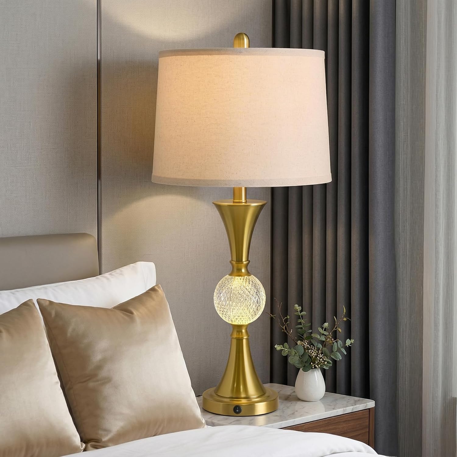 Illuminate your space with the Oneach 28.5″ Gold Table Lamps Set of 2, designed to bring a touch of luxury and elegance to any room. These tall bedside lamps are perfect for your bedroom, office, or living area, providing both style and functionality. Each lamp features a stunning gold finish that complements a variety of decor styles, making them an ideal addition to your nightstand or end table.